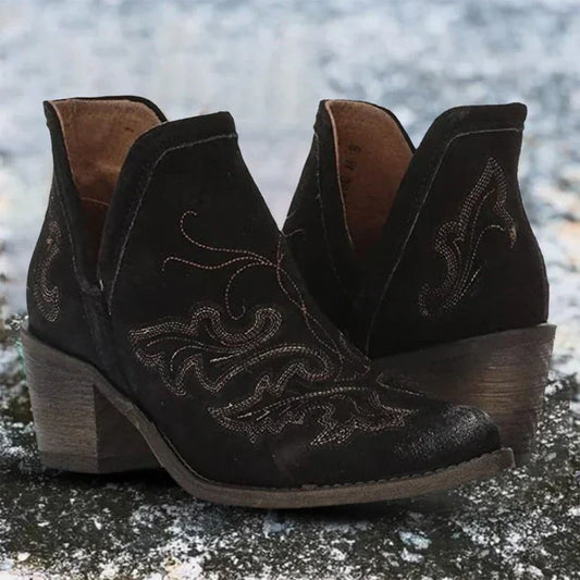 Ellie – afslappede højhælede ankelstøvler med Cossack-tå