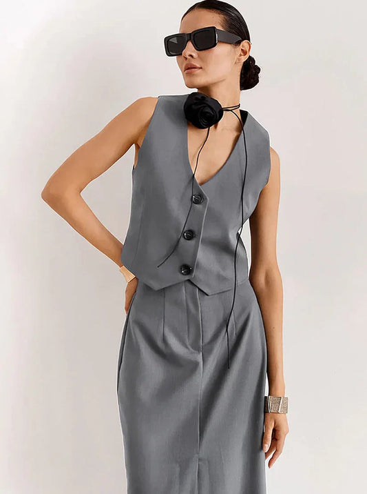 Ibrahimu | ensfarvet croptop med bølgelignende design og lagdelt nederdelsæt