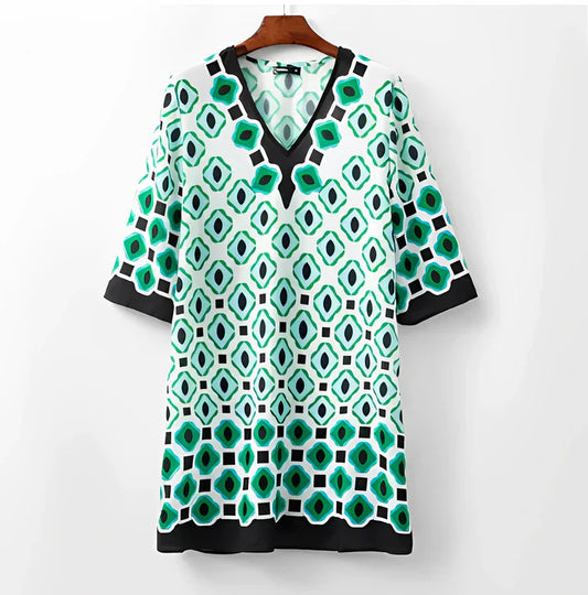Kjole med rund halsudskæring og 3/4 ærmer af hørblanding