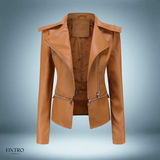 Luksus dobbeltradet læderjakke med fåreskindskrave til kvinder