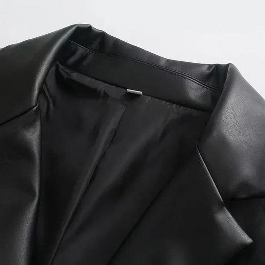 Læderjakke med lynlås og brystlomme til efterår/vinter