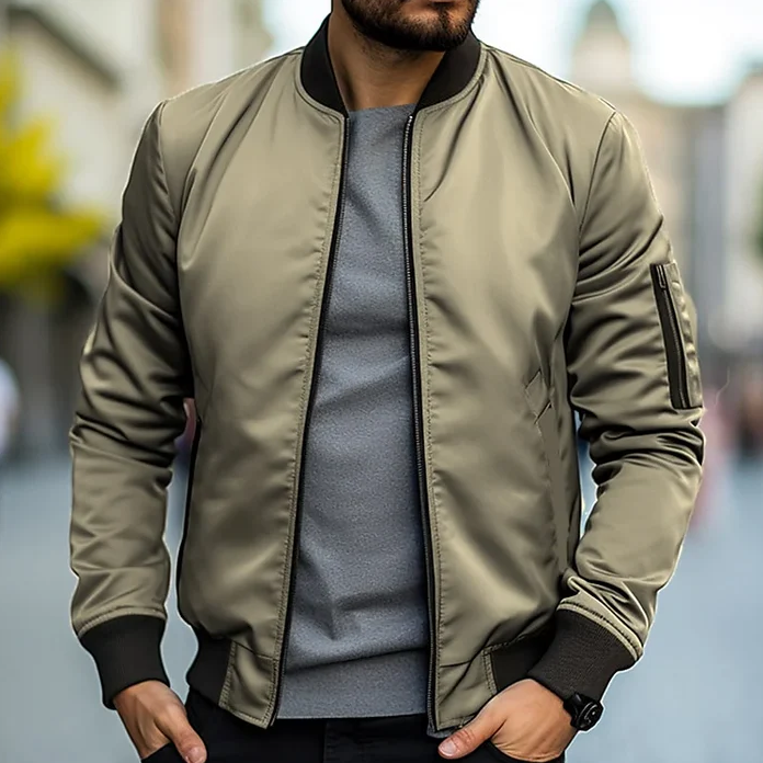 Bomberjakken til mænd byder på et cool og trendy look. Denne jakke er lavet af slidstærkt materiale og kombinerer komfort med et moderne snit, ideel til afslappede outfits og perfekt til overgangssæsonen. En alsidig tilføjelse til enhver garderobe.