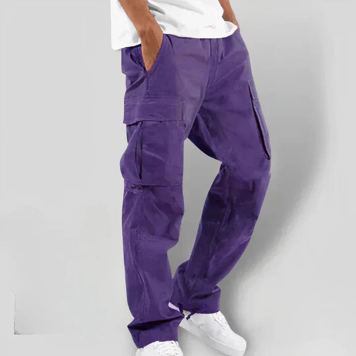 Felix er et par farverige cargobukser til mænd i mørkegrå, der er velegnet til både afslappede og aktive dage. Med flere lommer tilbyder disse bukser ikke kun stil, men også praktisk opbevaringsplads til hverdagens væsentlige ting .