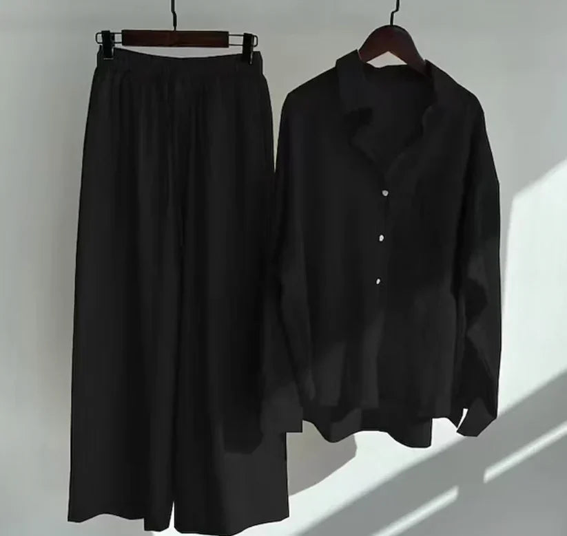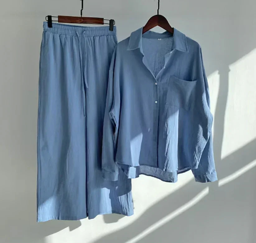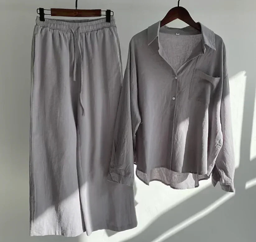 Vi introducerer Geneve, Summer Linen Set, et luftigt hørensemble perfekt til varmt vejr. Dette stilfulde sæt har et let og åndbart design, der giver komfort og elegance til enhver afslappet sommerbegivenhed. Ideel til at holde sig kølig og smart.