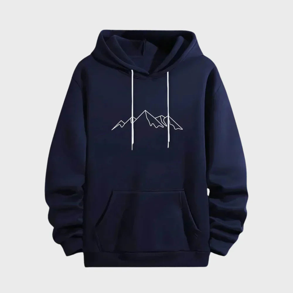 Hættetrøjen med bjergprint til mænd kombinerer komfort og stil. Med sit iøjnefaldende design er den perfekt til fritids- og udendørsaktiviteter. Blødt materiale og afslappet snit gør den ideel til afslappet og sporty look.