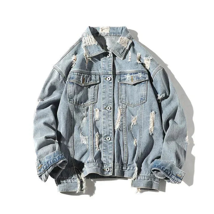 "Mesha – denimjakke til mænd med patch på ryggen: Stilfuld denimjakke til mænd, dekoreret med et iøjnefaldende patch på ryggen. Et trendy stykke til et afslappet look."