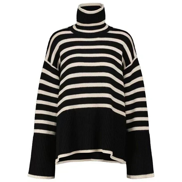 Natalie -stribet rullekrave er et stilfuldt og alsidigt valg til køligere dage. Med sine moderigtige striber og behagelige rullekrave giver denne sweater både varme og et trendy look. Perfekt til at bære afslappet eller elegant , Natalie rullekrave-sweater tilføjer et legende og moderne touch til ethvert outfit .