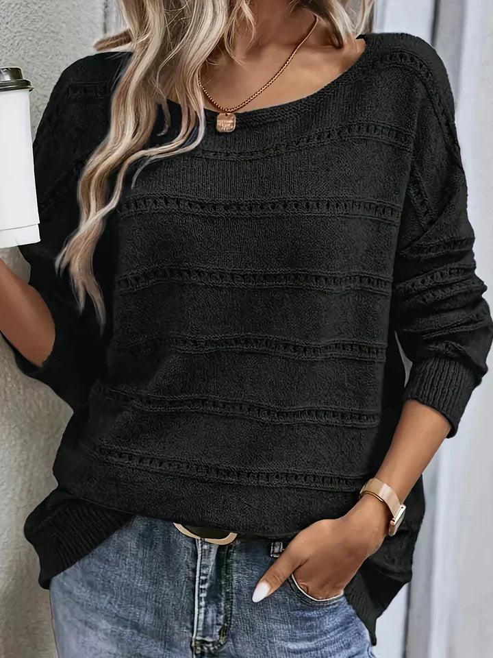 Den lilla Mia striktrøje med lange ærmer er perfekt til køligere dage. Denne bløde og behagelige sweater har et stilfuldt design, der er let at kombinere og er ideel til et afslappet og varmt look.
