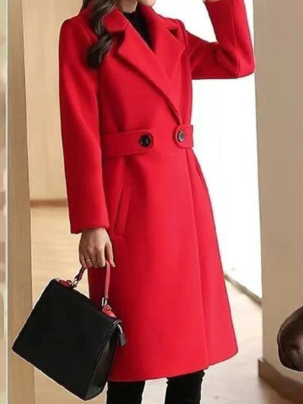 Sara – slank uld vinterfrakke med bælte. Elegant og varm, med en flatterende pasform til kolde dage.