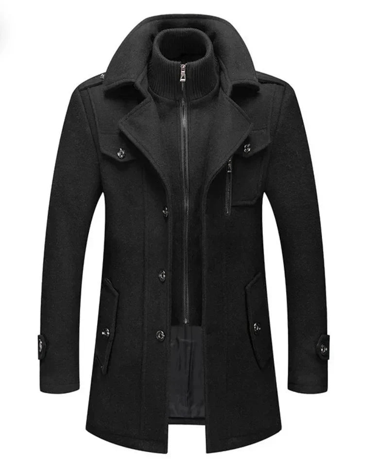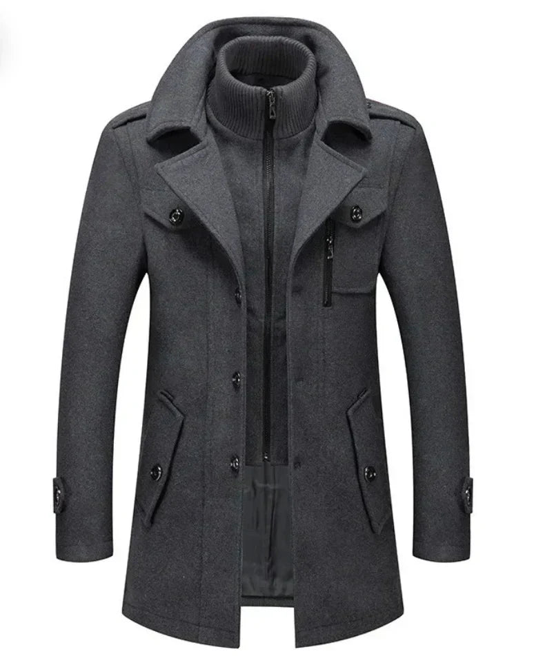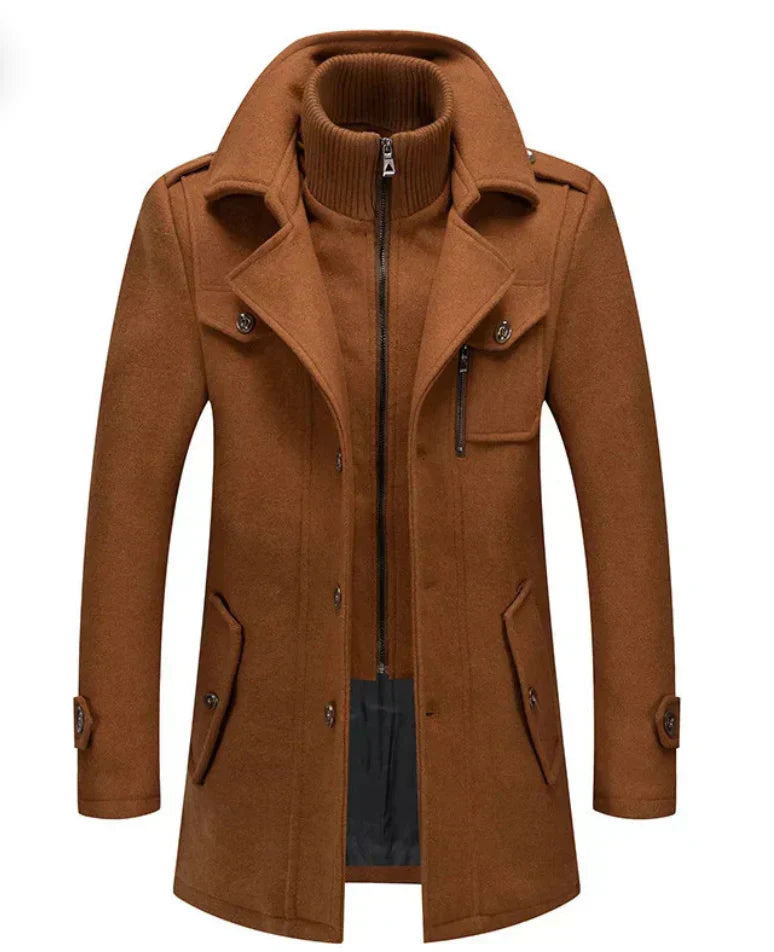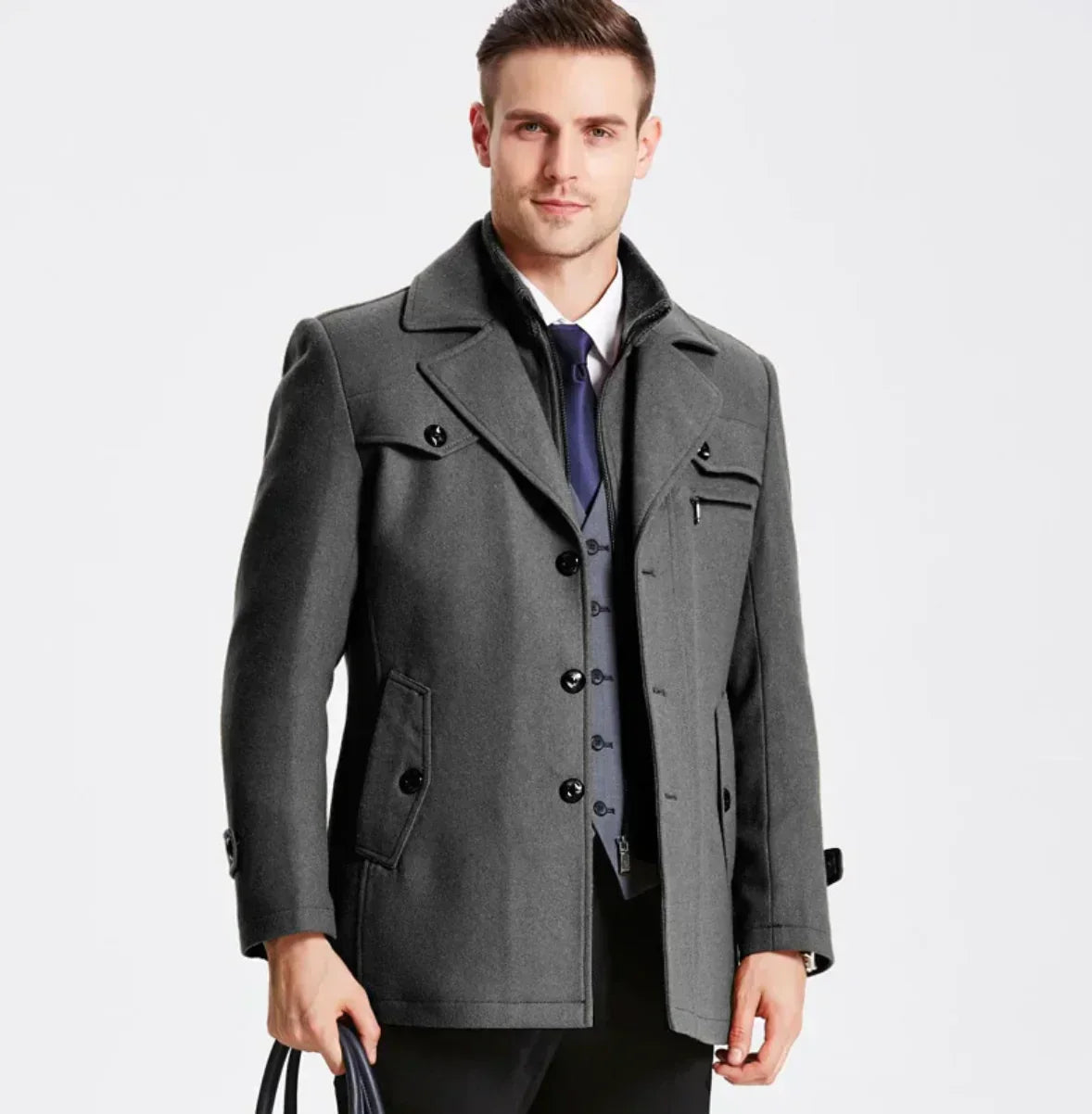 Valmore herrejakke lavet af højkvalitets uldblandingsstof med indvendig krave giver tidløs elegance og optimal komfort. Det klassiske snit og det varme, elegante håndværk gør den til den ideelle ledsager til kølige dage og stilfulde optrædener.