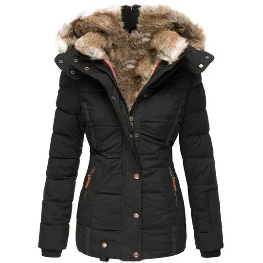 Varm damejakke med pelshætte i vinterdesign til efterår/vinter